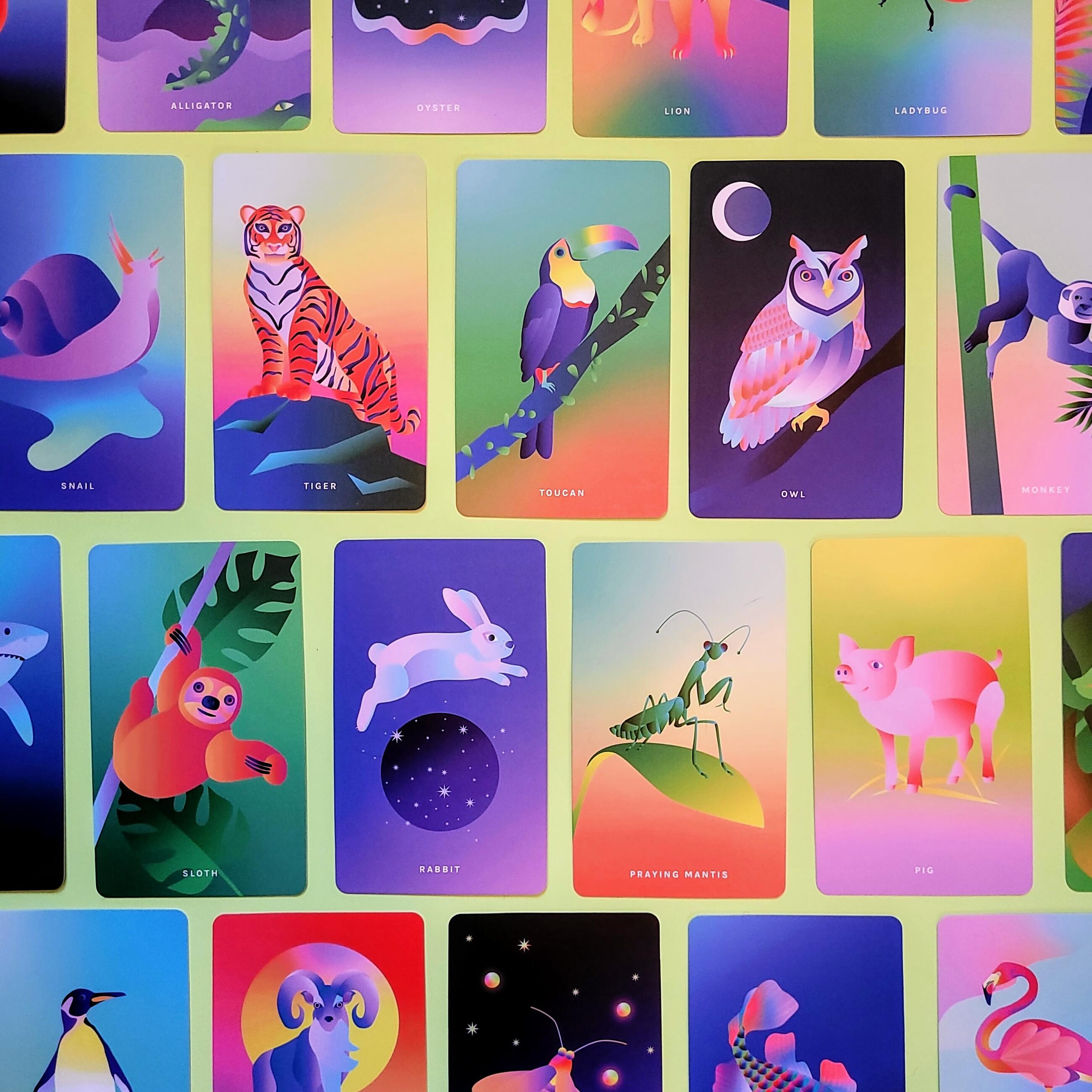 - Features 66 full-color cosmic creature cards: Discover the attributes 66 different creatures from land, sea, and sky using this beautiful, graphic oracle deck. From panthers to dolphins, the most captivating and magical animals under the stars are rendered in stunning colors and vivid details on these durable divination cards.