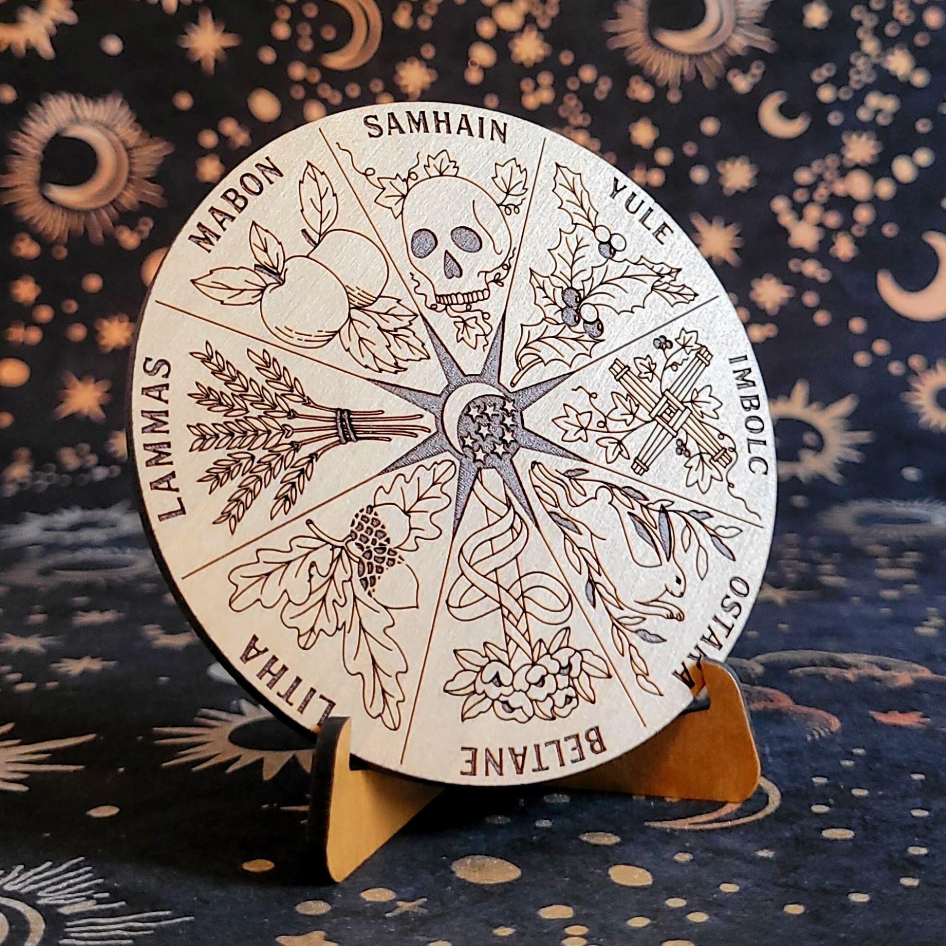 - The perfect addition to your mystical altar. Stay connected to the rhythms of the year with this beautiful wooden keepsake, which can be added to any altar or desk.